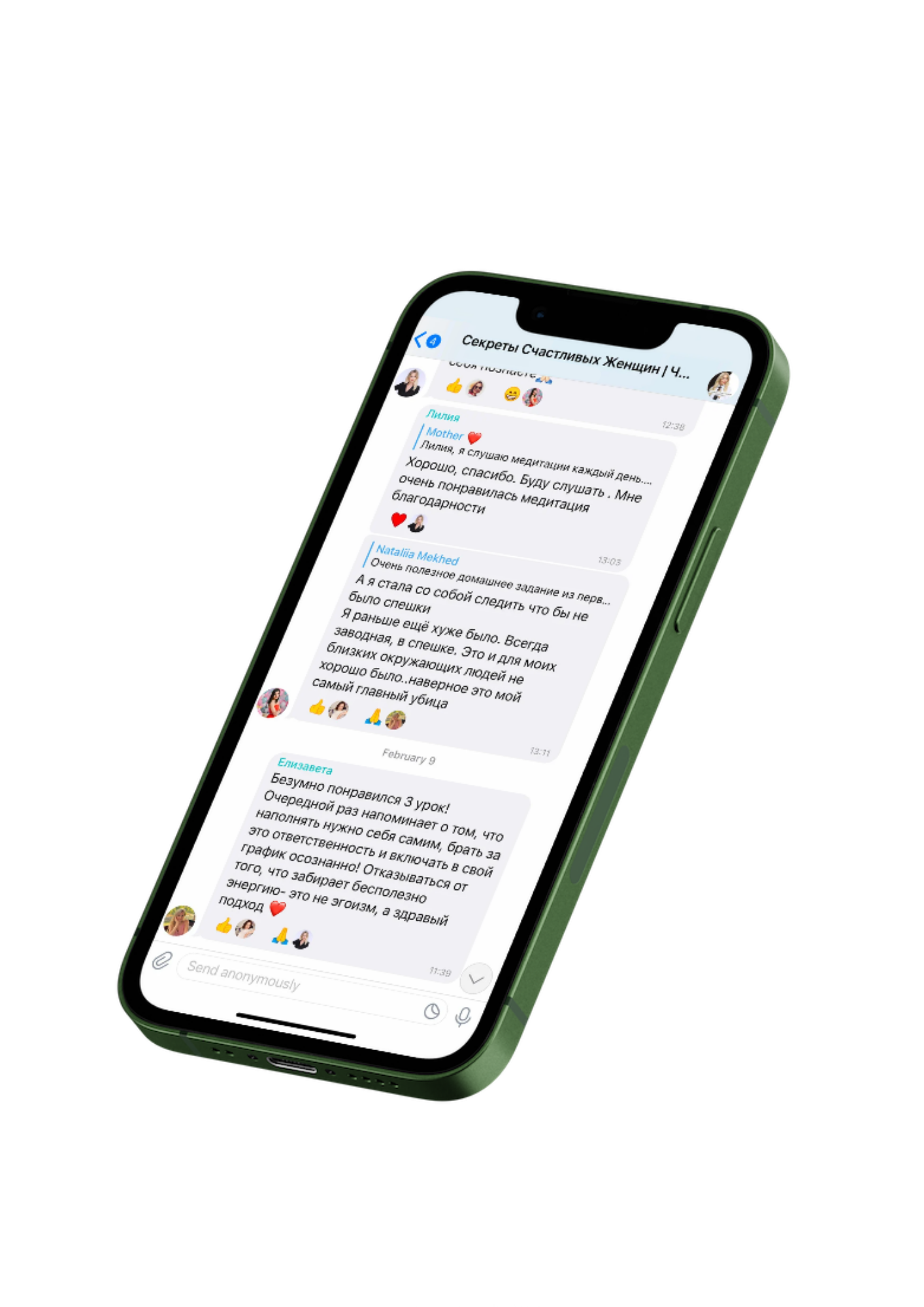 Программа Секреты Счастливых Женщин — это комплексная проработка всех жизненных сфер в течение 6 недель. В работе мы будем задейстовать разные инструменты — видеоуроки, рабочую тетрадь и общение с другими участницами, для того, чтобы достичь результата.